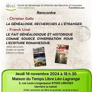 Deux thèmes Généalogie seront abordés par Christian Gallo et Franck Linol.